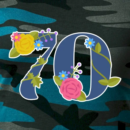 Narodeninové tričko pre oslávenca, ktorý oslavuje jubileum 70 rokov. Tričko, na ktorom je číslovka 70 s kvetmi. Darček k sedemdesiatym narodeninám.