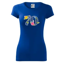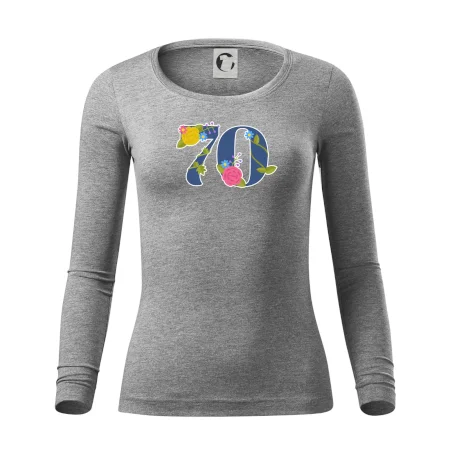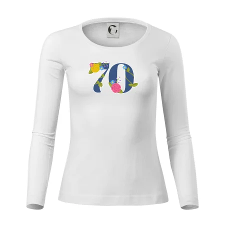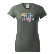 Narodeninové tričko pre oslávenca, ktorý oslavuje jubileum 70 rokov. Tričko, na ktorom je číslovka 70 s kvetmi. Darček k sedemdesiatym narodeninám.