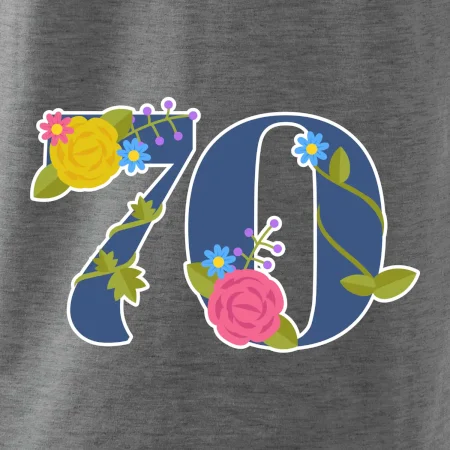 Narodeninové tričko pre oslávenca, ktorý oslavuje jubileum 70 rokov. Tričko, na ktorom je číslovka 70 s kvetmi. Darček k sedemdesiatym narodeninám.