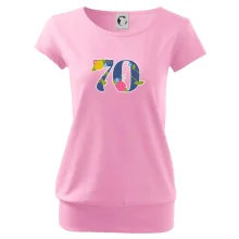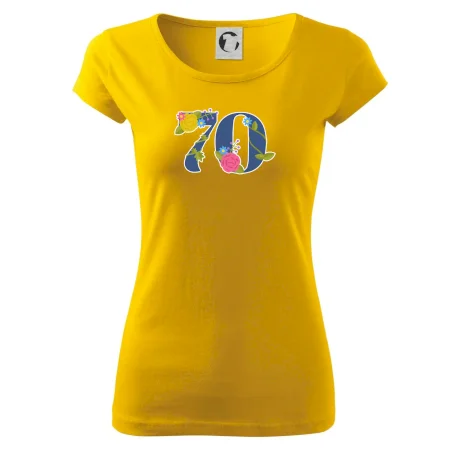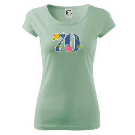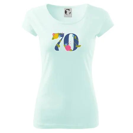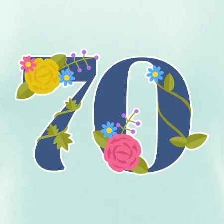 Narodeninové tričko pre oslávenca, ktorý oslavuje jubileum 70 rokov. Tričko, na ktorom je číslovka 70 s kvetmi. Darček k sedemdesiatym narodeninám.