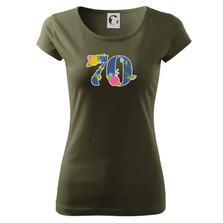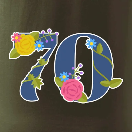 Narodeninové tričko pre oslávenca, ktorý oslavuje jubileum 70 rokov. Tričko, na ktorom je číslovka 70 s kvetmi. Darček k sedemdesiatym narodeninám.