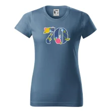 Narodeninové tričko pre oslávenca, ktorý oslavuje jubileum 70 rokov. Tričko, na ktorom je číslovka 70 s kvetmi. Darček k sedemdesiatym narodeninám.
