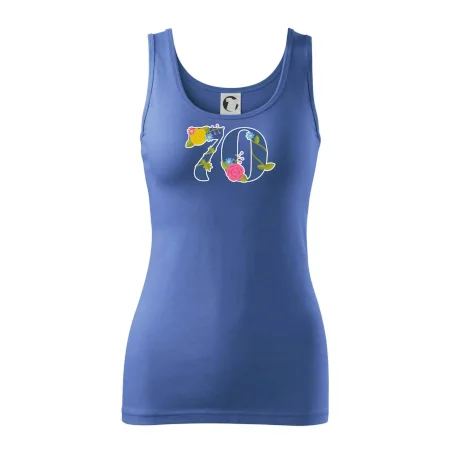 Narodeninové tričko pre oslávenca, ktorý oslavuje jubileum 70 rokov. Tričko, na ktorom je číslovka 70 s kvetmi. Darček k sedemdesiatym narodeninám.