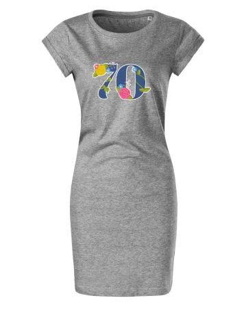 Narodeninové tričko pre oslávenca, ktorý oslavuje jubileum 70 rokov. Tričko, na ktorom je číslovka 70 s kvetmi. Darček k sedemdesiatym narodeninám.