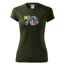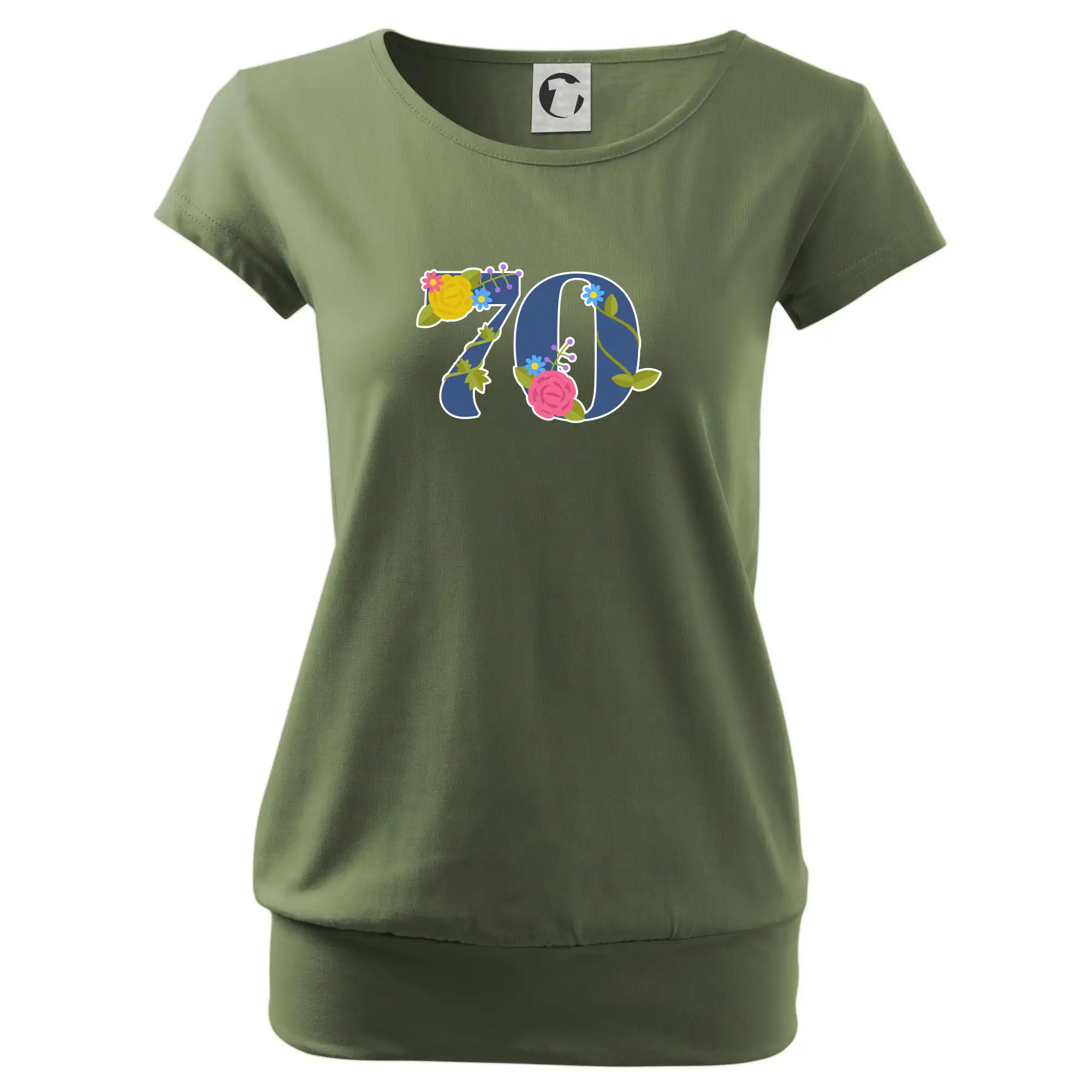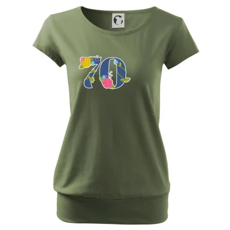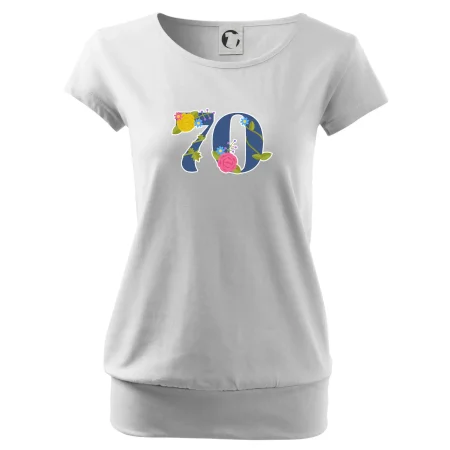 Narodeninové tričko pre oslávenca, ktorý oslavuje jubileum 70 rokov. Tričko, na ktorom je číslovka 70 s kvetmi. Darček k sedemdesiatym narodeninám.
