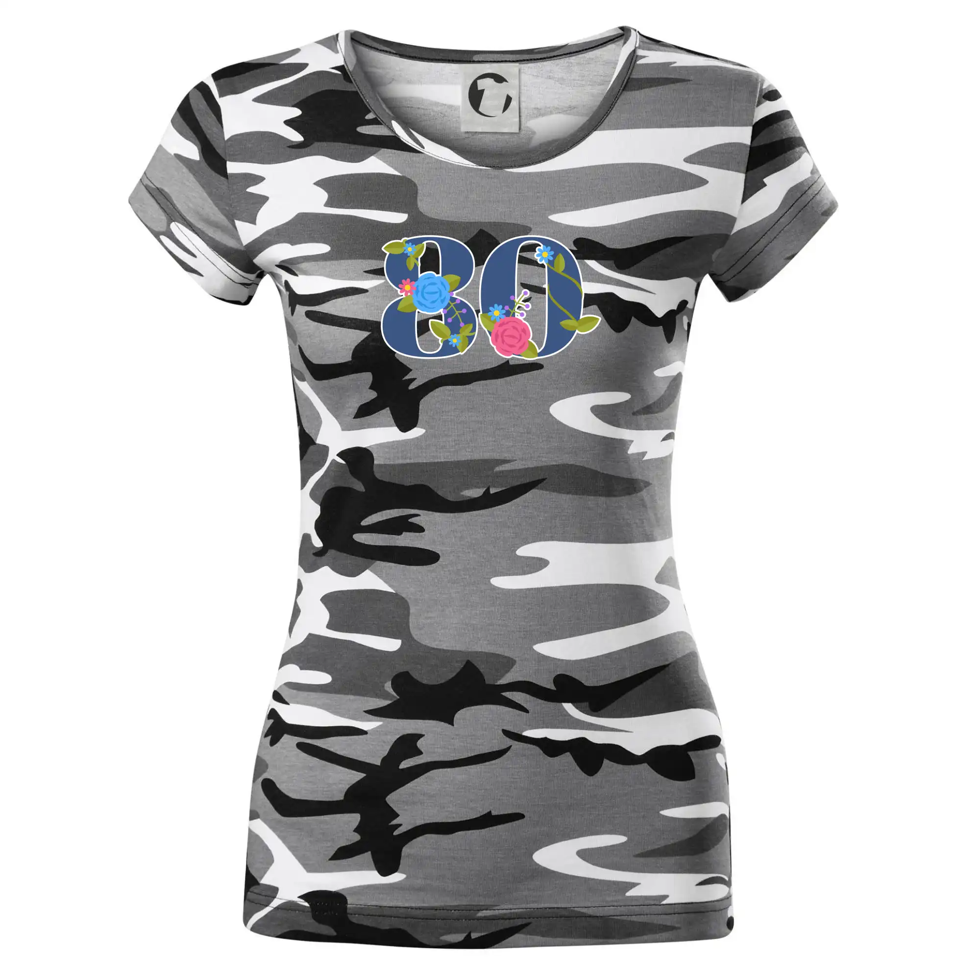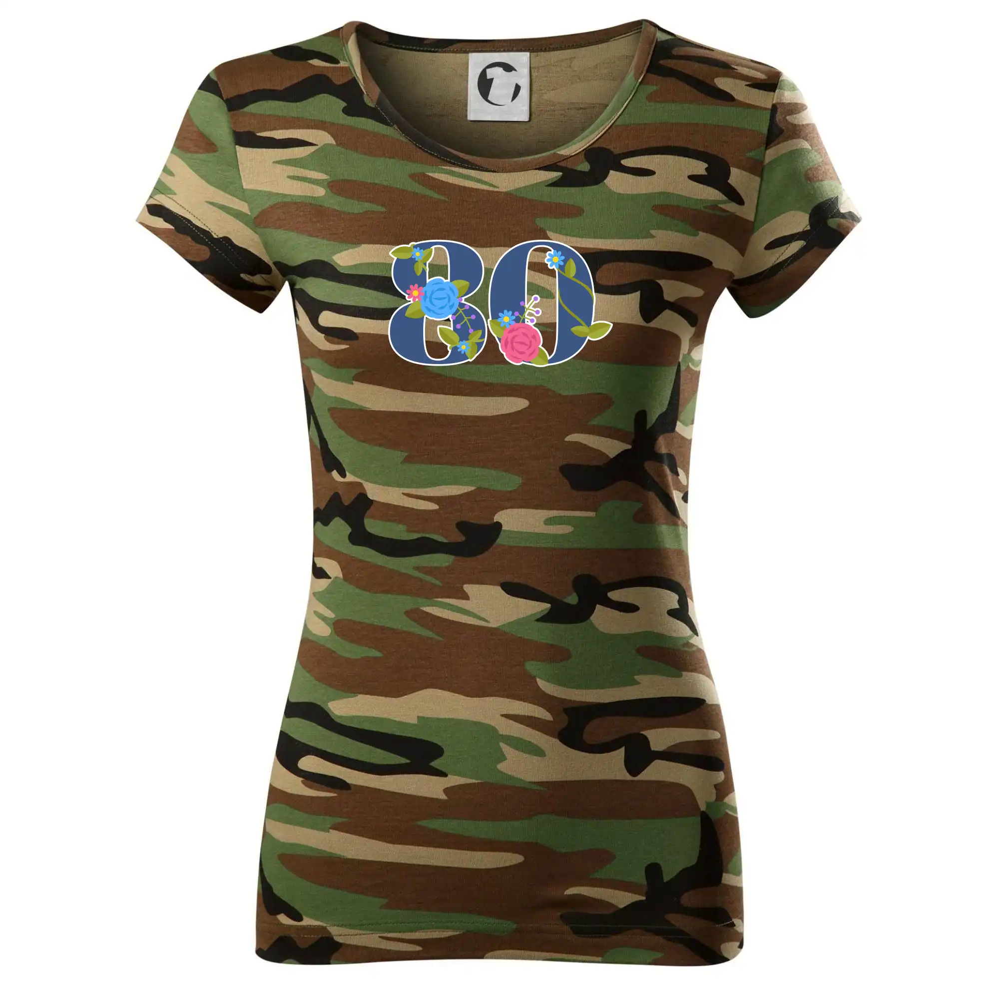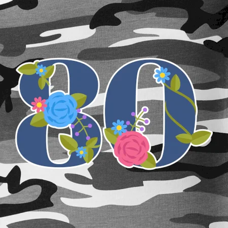 Narodeninové tričko pre oslávenca, ktorý oslavuje jubileum 80 rokov. Tričko, na ktorom je číslovka 80 s kvetmi. Darček k osemdesiatym narodeninám.