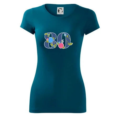 Narodeninové tričko pre oslávenca, ktorý oslavuje jubileum 80 rokov. Tričko, na ktorom je číslovka 80 s kvetmi. Darček k osemdesiatym narodeninám.