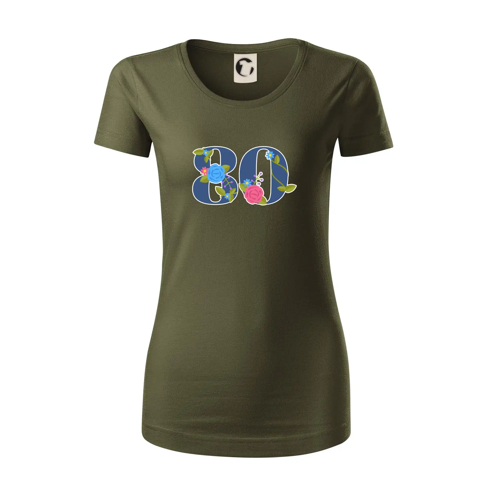 Narodeninové tričko pre oslávenca, ktorý oslavuje jubileum 80 rokov. Tričko, na ktorom je číslovka 80 s kvetmi. Darček k osemdesiatym narodeninám.