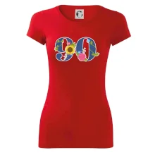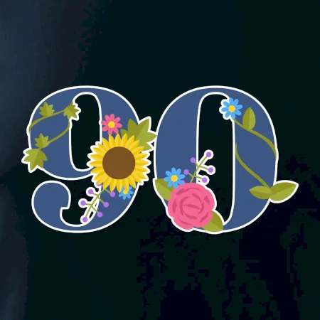 Narodeninové tričko pre oslávenca, ktorý oslavuje jubileum 90 rokov. Tričko, na ktorom je číslovka 90 s kvetmi. Darček k deväťdesiatym narodeninám.