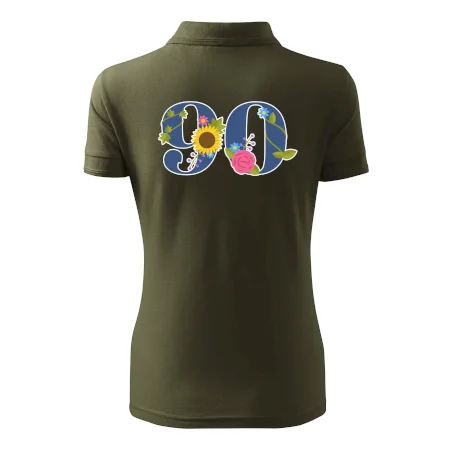 Narodeninové tričko pre oslávenca, ktorý oslavuje jubileum 90 rokov. Tričko, na ktorom je číslovka 90 s kvetmi. Darček k deväťdesiatym narodeninám.