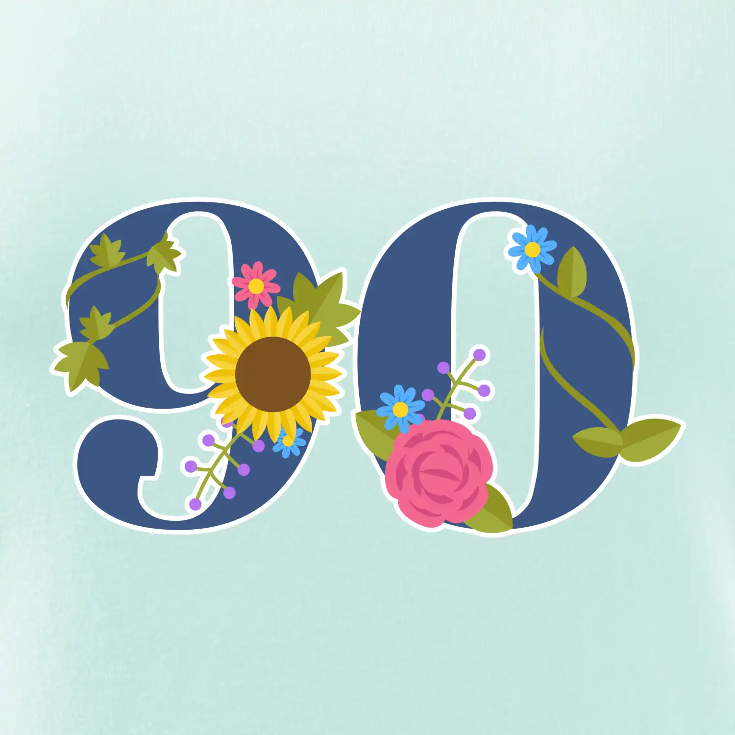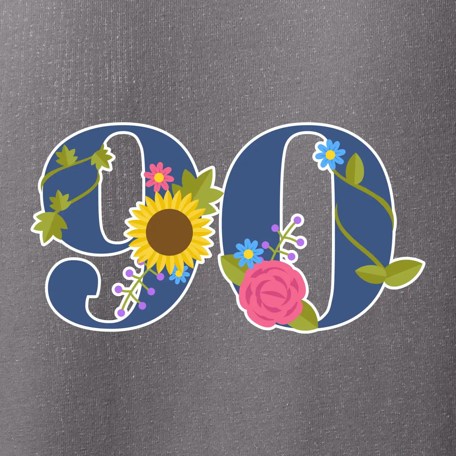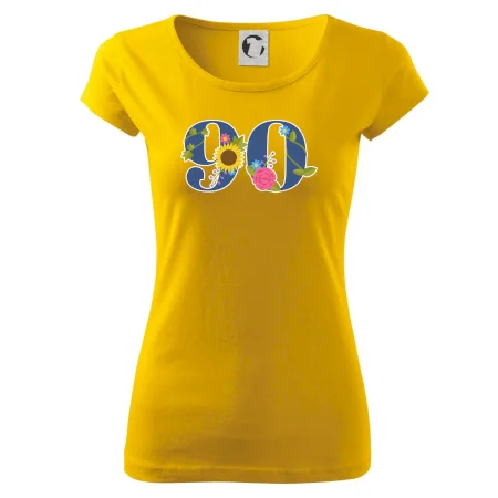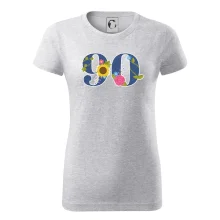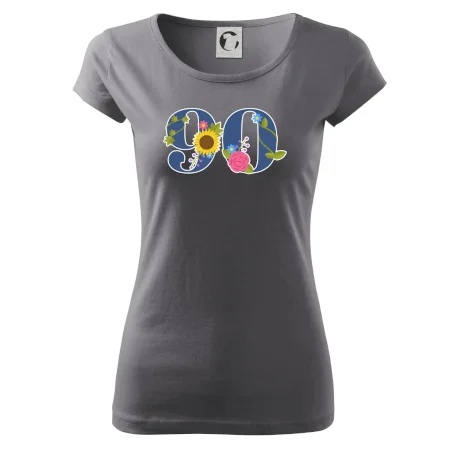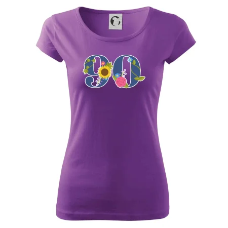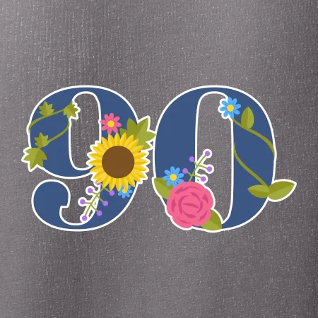 Narodeninové tričko pre oslávenca, ktorý oslavuje jubileum 90 rokov. Tričko, na ktorom je číslovka 90 s kvetmi. Darček k deväťdesiatym narodeninám.