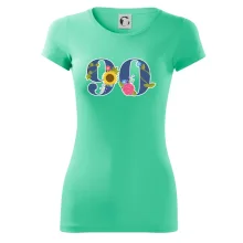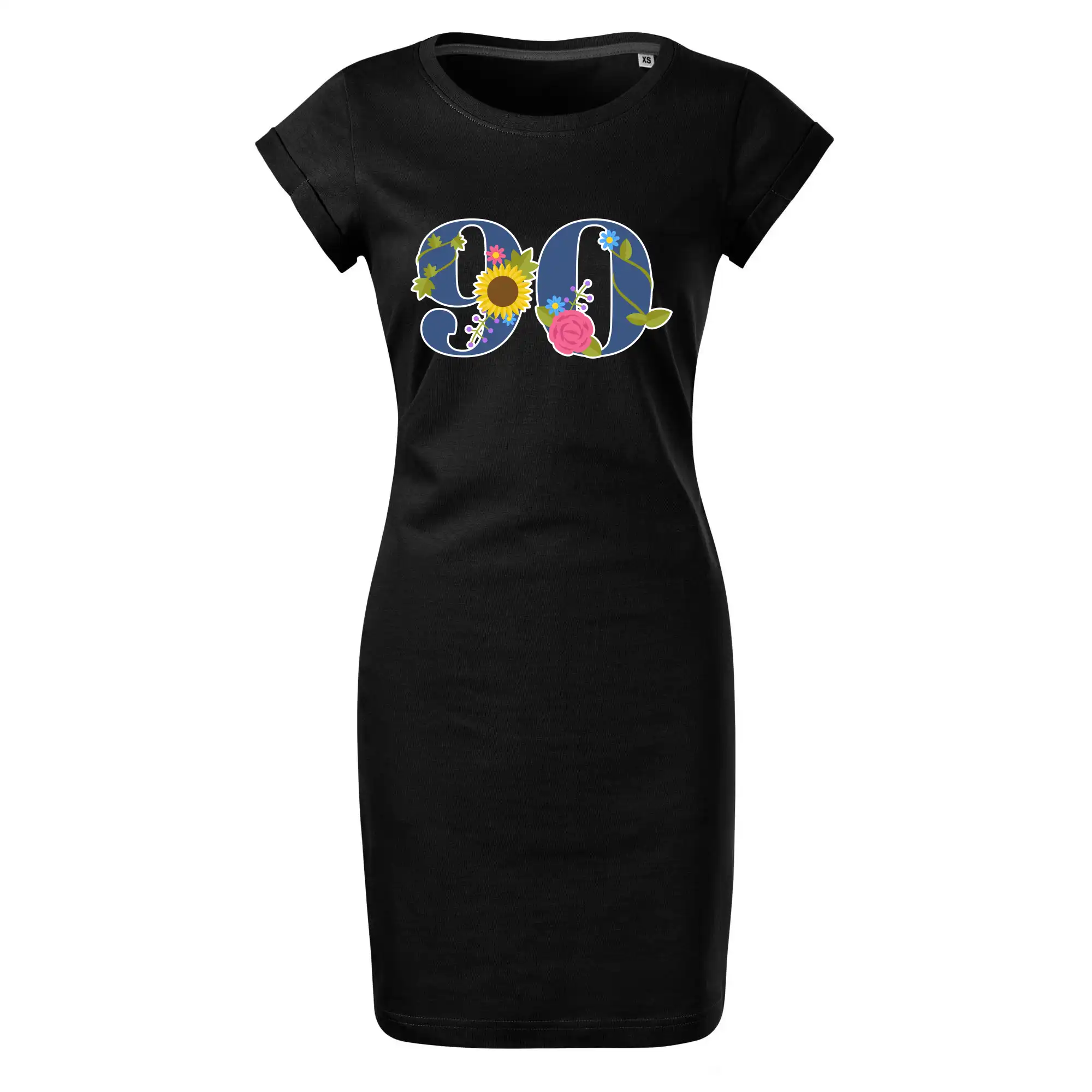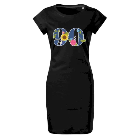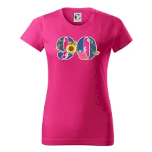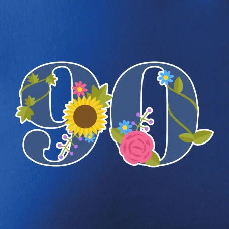 Narodeninové tričko pre oslávenca, ktorý oslavuje jubileum 90 rokov. Tričko, na ktorom je číslovka 90 s kvetmi. Darček k deväťdesiatym narodeninám.