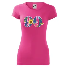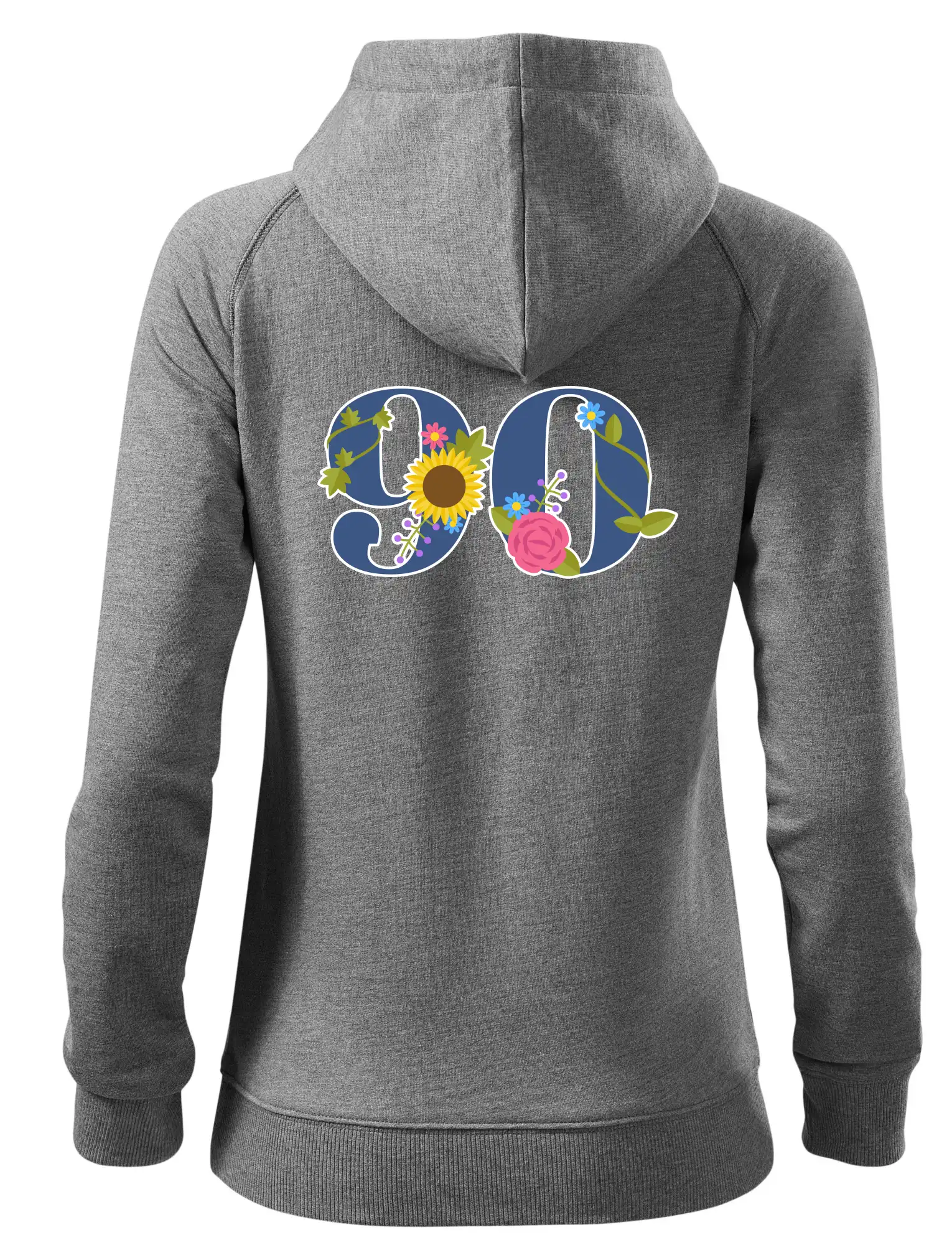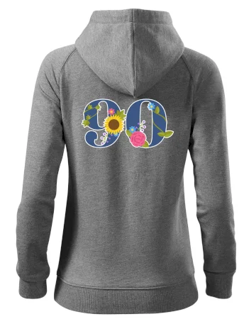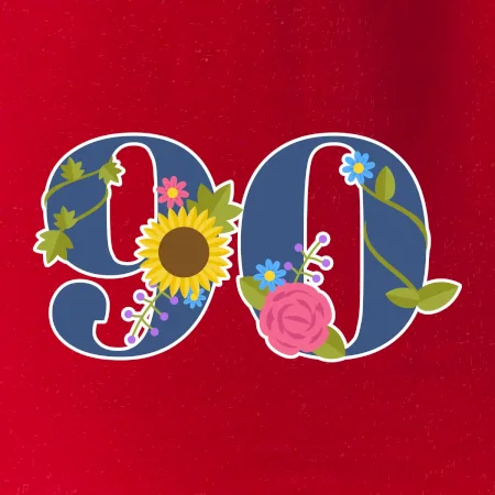 Narodeninové tričko pre oslávenca, ktorý oslavuje jubileum 90 rokov. Tričko, na ktorom je číslovka 90 s kvetmi. Darček k deväťdesiatym narodeninám.