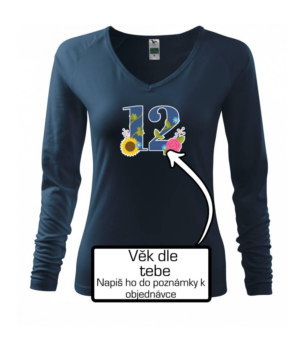 Narodeninové tričko, na ktorom je číslovka s kvetmi a vek podľa Teba. Darček k narodeninám.