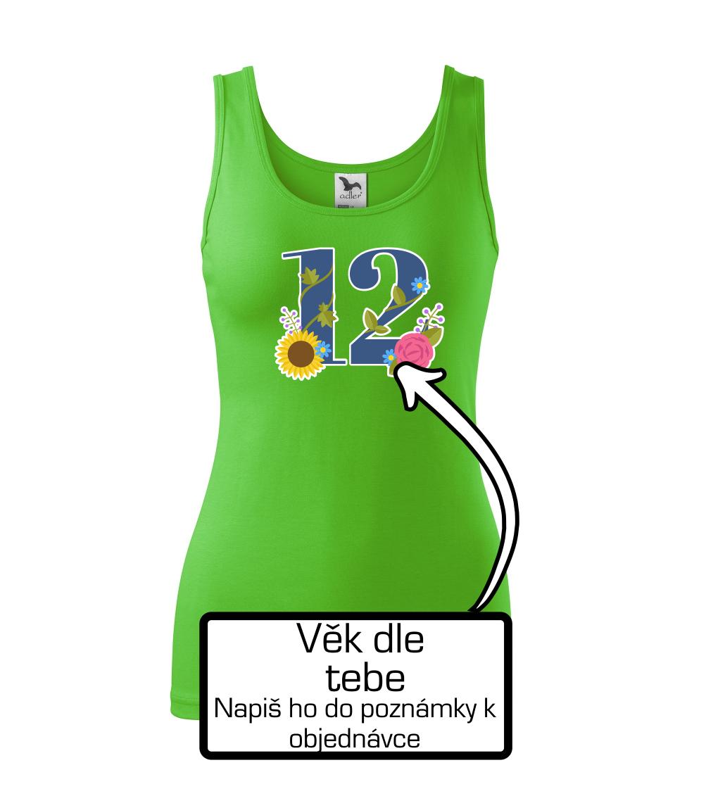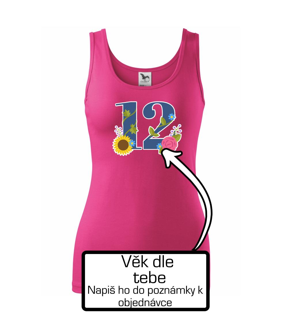 Narodeninové tričko, na ktorom je číslovka s kvetmi a vek podľa Teba. Darček k narodeninám.