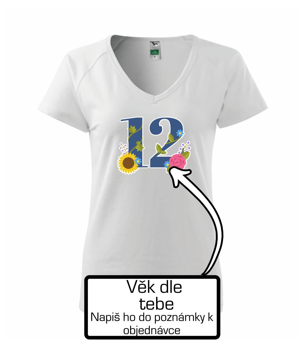 Narodeninové tričko, na ktorom je číslovka s kvetmi a vek podľa Teba. Darček k narodeninám.
