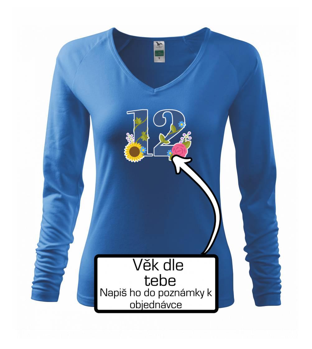 Narodeninové tričko, na ktorom je číslovka s kvetmi a vek podľa Teba. Darček k narodeninám.