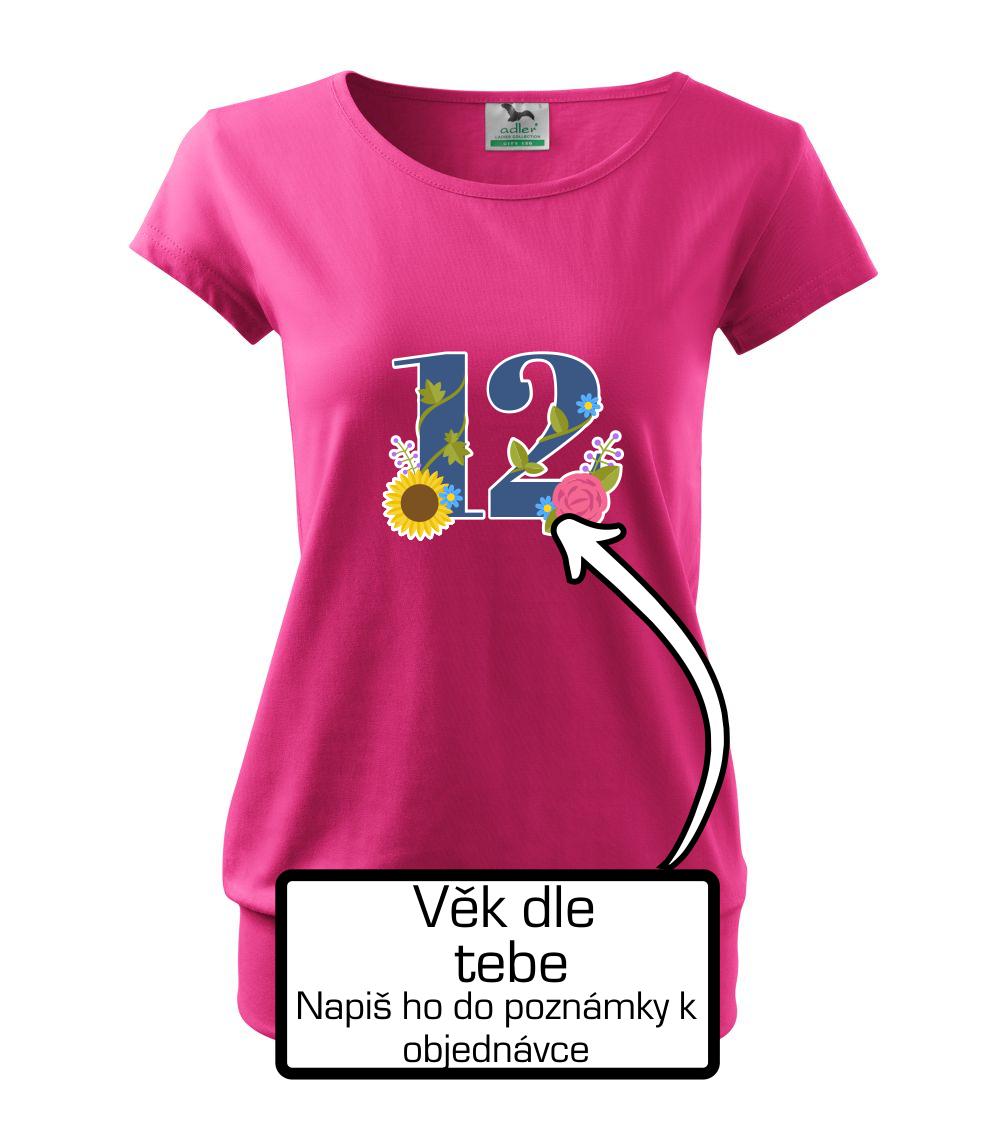 Narodeninové tričko, na ktorom je číslovka s kvetmi a vek podľa Teba. Darček k narodeninám.
