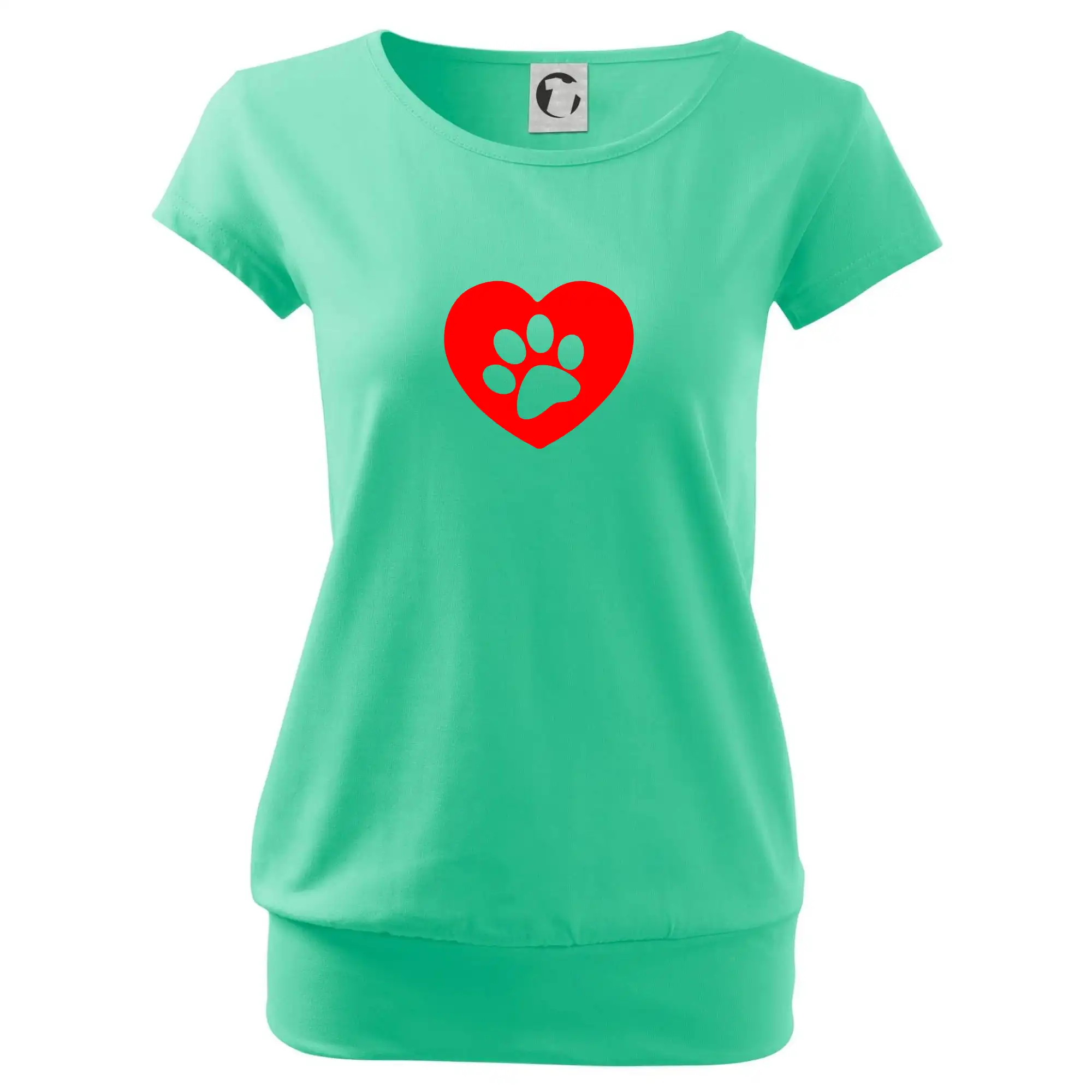 Trendové dámske tričko s veľmi krátkym rukávom, voľnejšieho strihu, v dolnom kraji všité do širokého lemu. Okrúhly priekrčník s úzkym lemom zo zhodného materiálu.
