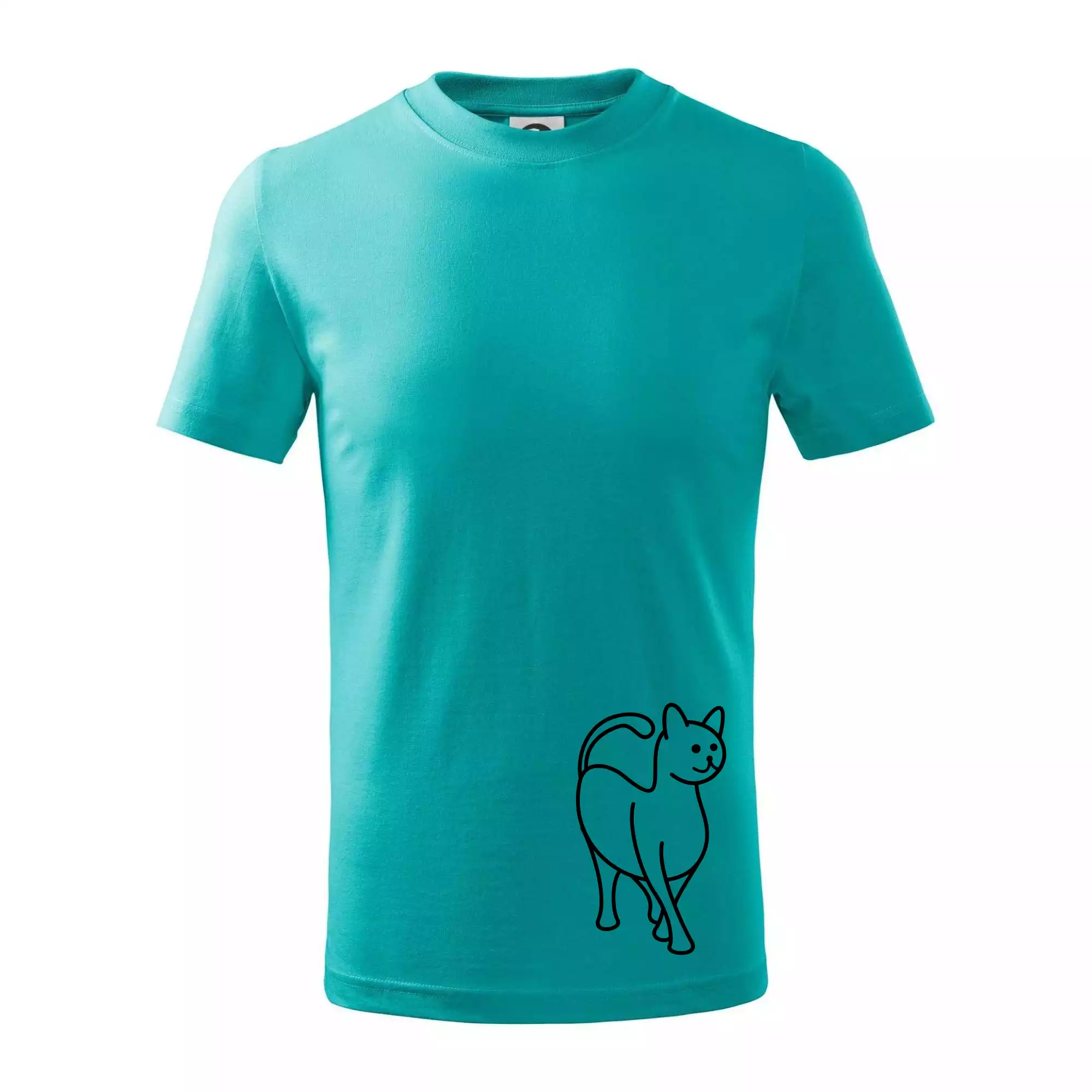 Detské tričko strednej gramáže s bočnými švami. Úzky priekrčník s prídavkom 5% elastanu. Vnútorná časť zadného priekrčníka začistená tkanou páskou. Spevnený ramenný šev.