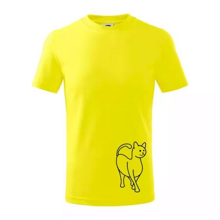 Detské tričko strednej gramáže s bočnými švami. Úzky priekrčník s prídavkom 5% elastanu. Vnútorná časť zadného priekrčníka začistená tkanou páskou. Spevnený ramenný šev.