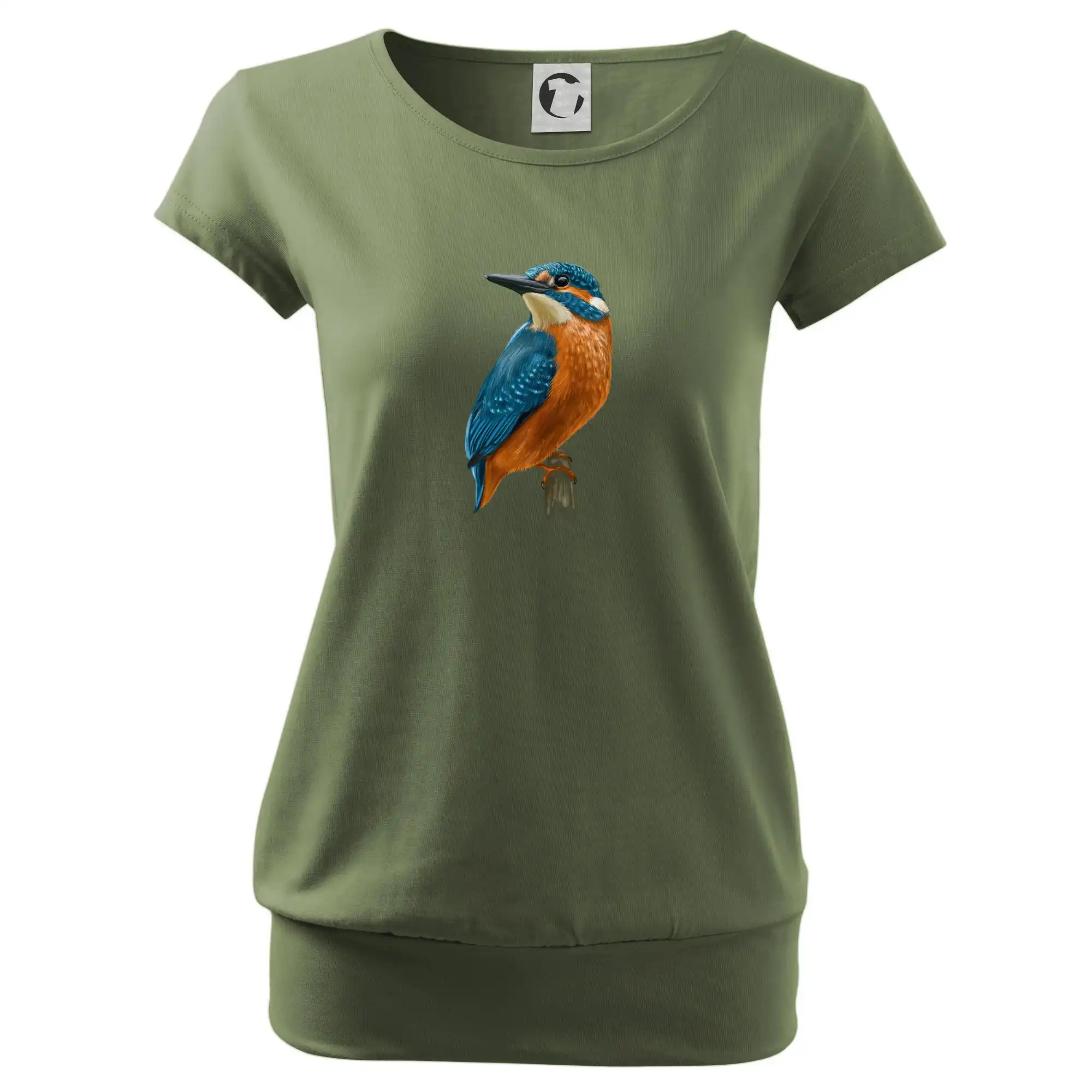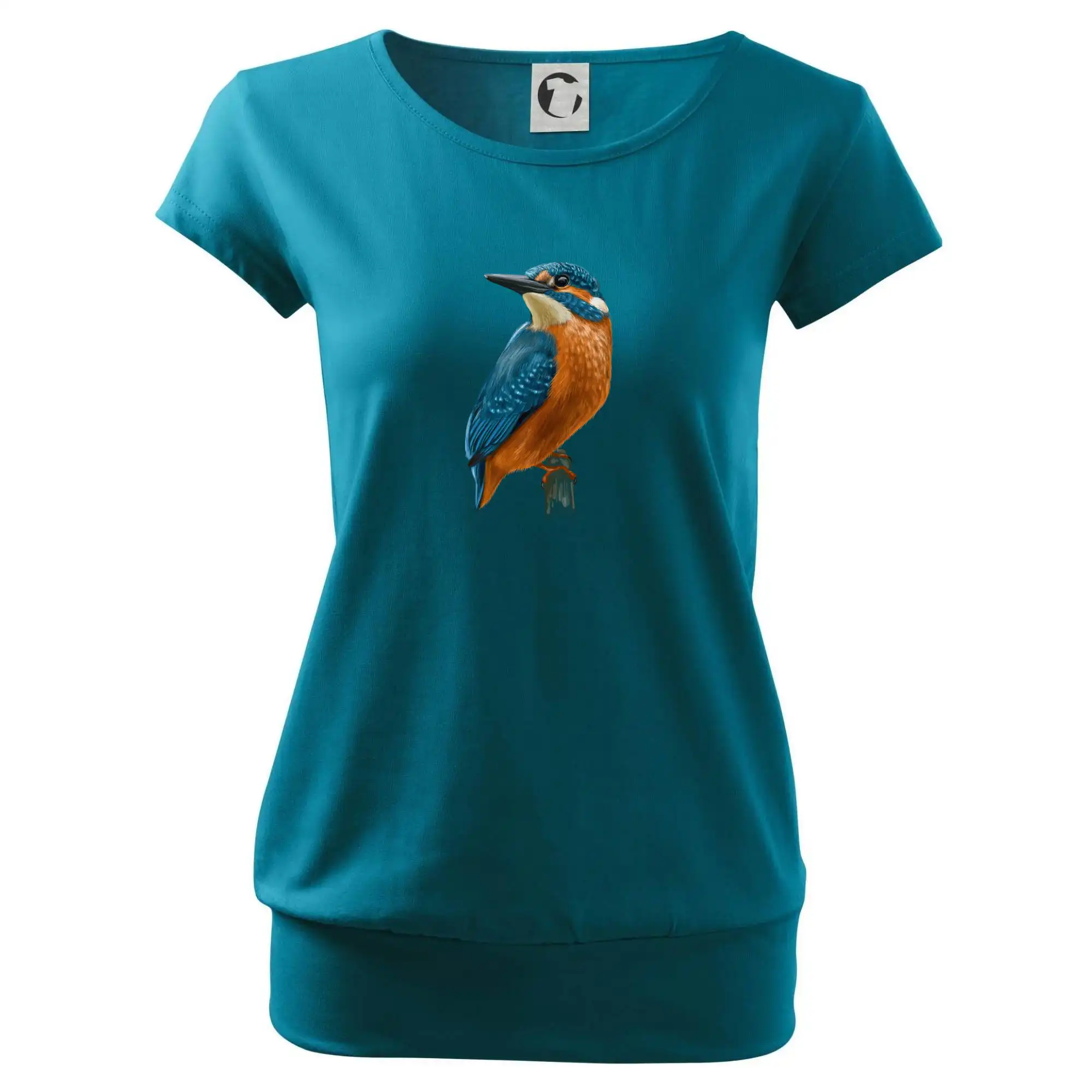 Trendové dámske tričko s veľmi krátkym rukávom, voľnejšieho strihu, v dolnom kraji všité do širokého lemu. Okrúhly priekrčník s úzkym lemom zo zhodného materiálu.