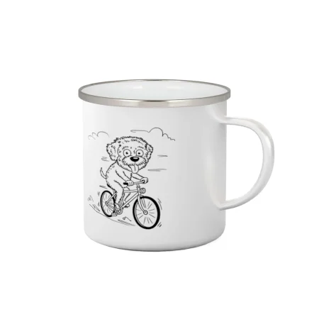 Lagotto romagnolo karikatúra na bicykli čierna