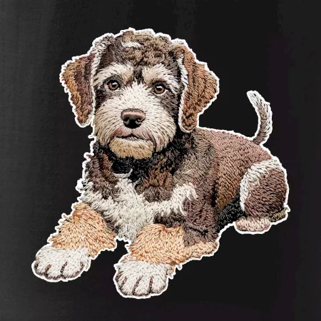 Lagotto romagnolo ležiaci vyšívaný na prsníku