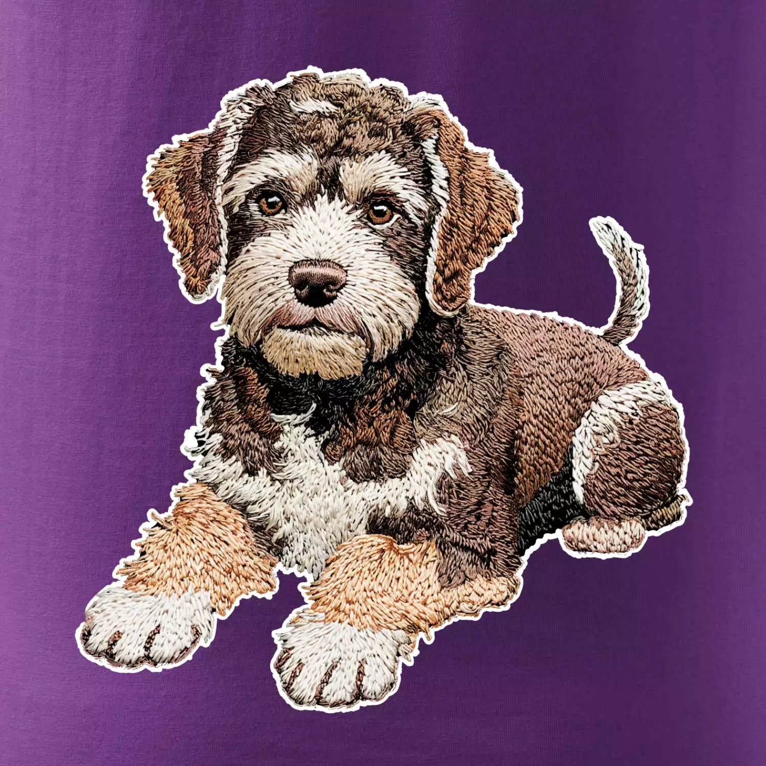 Lagotto romagnolo ležiaci vyšívaný na prsníku