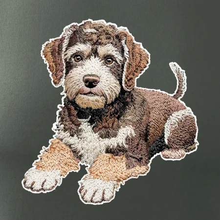 Lagotto romagnolo ležiaci vyšívaný na prsníku