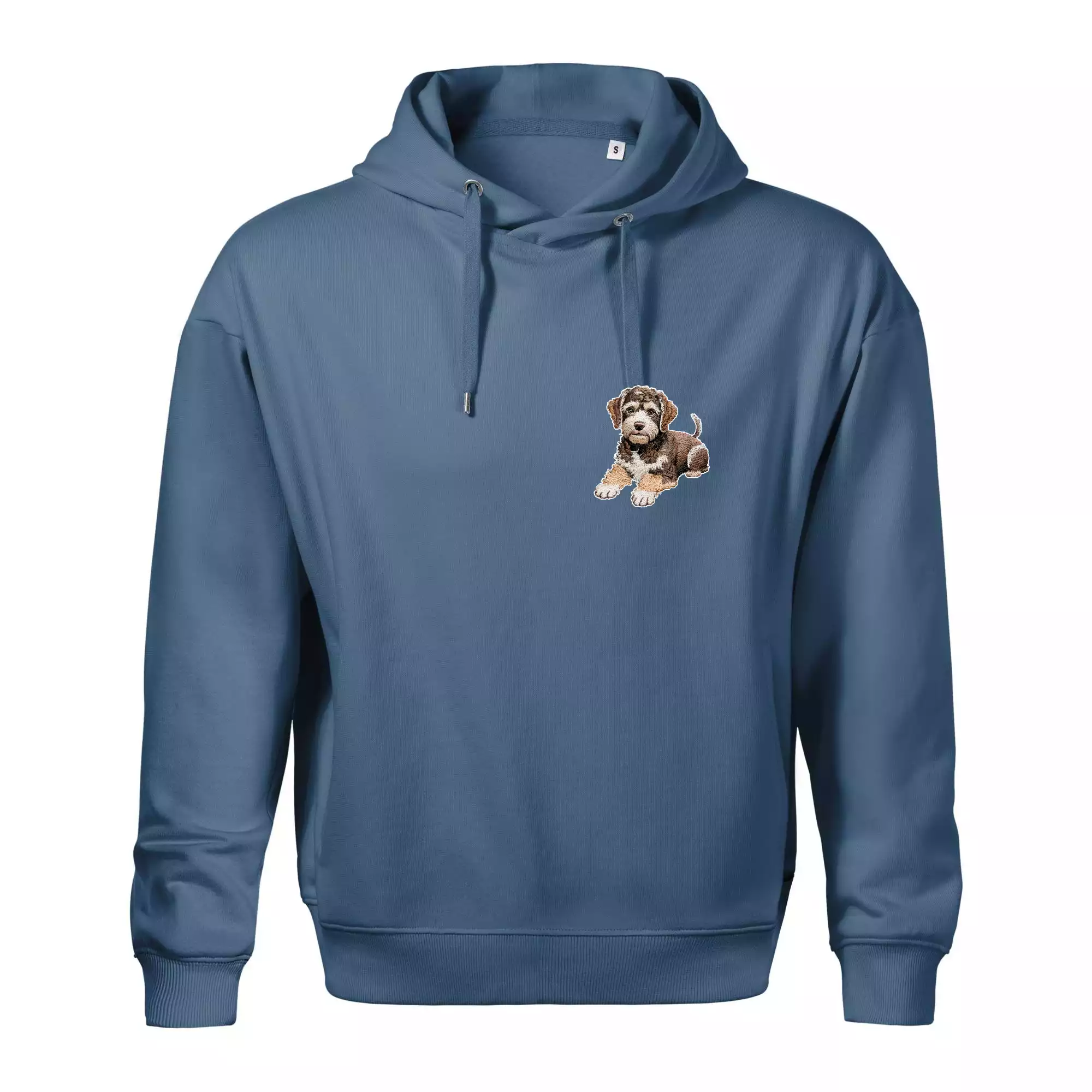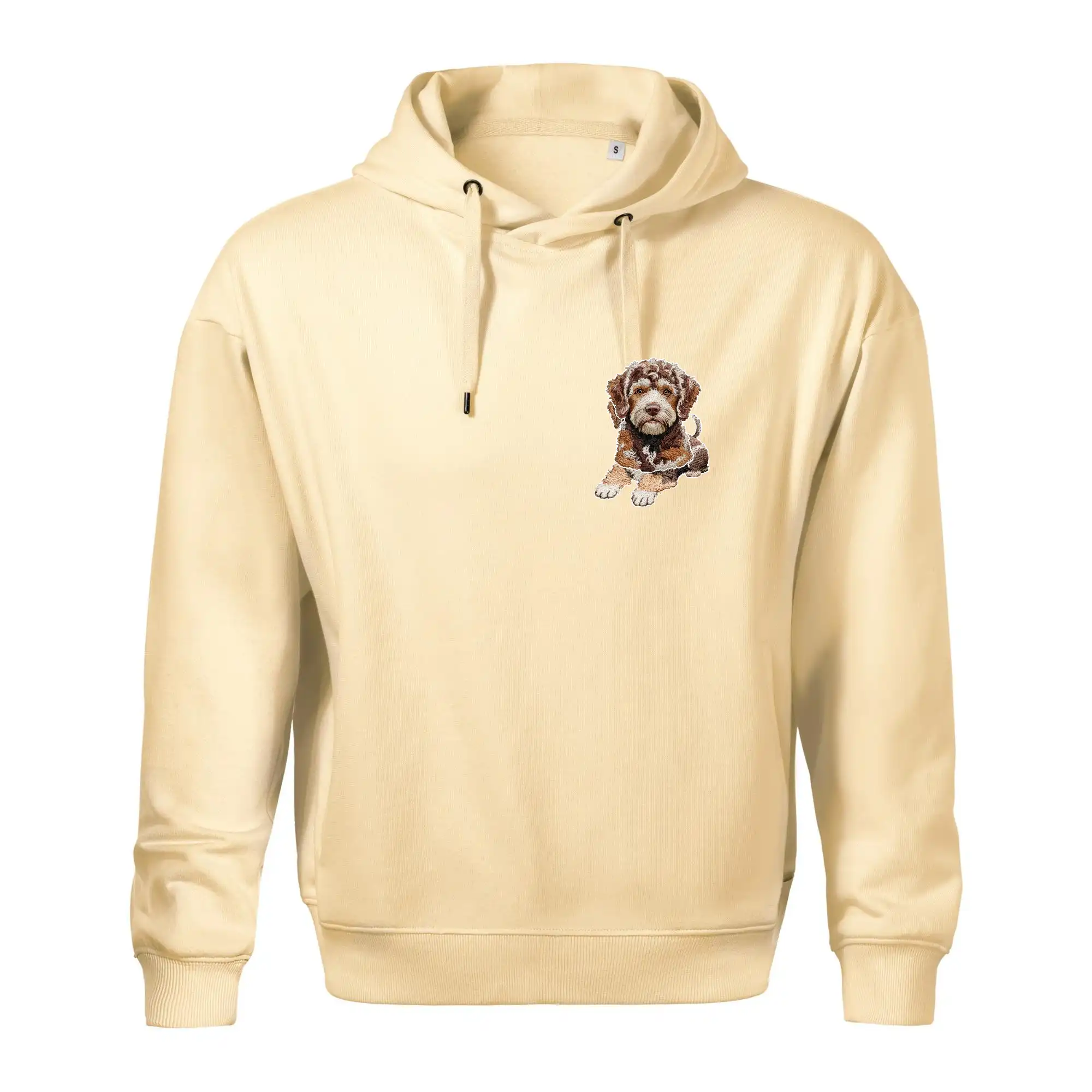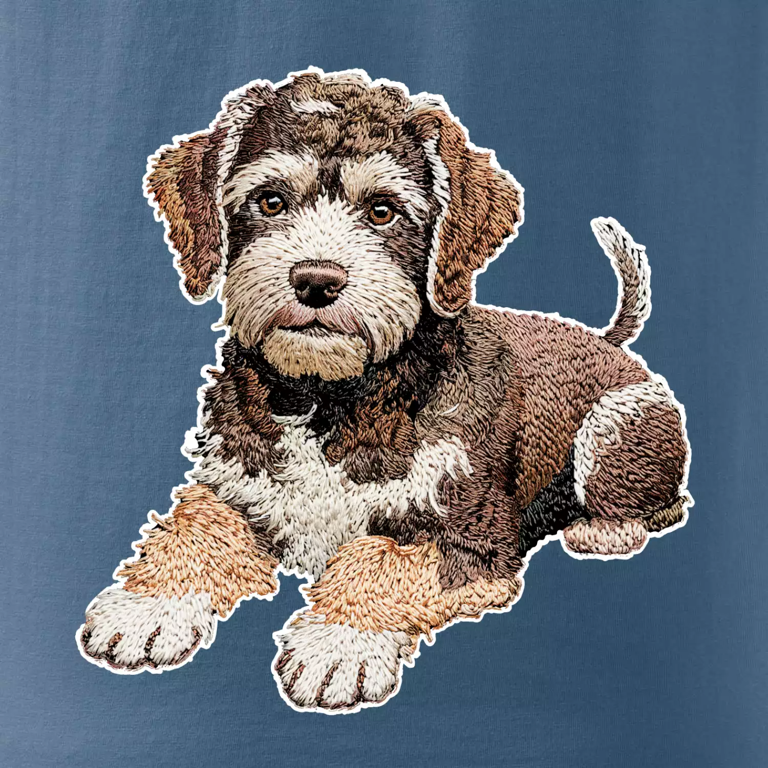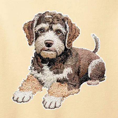 Lagotto romagnolo ležiaci vyšívaný na prsníku