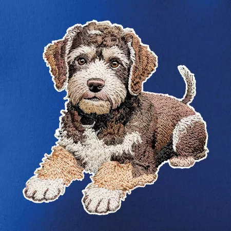 Lagotto romagnolo ležiaci vyšívaný na prsníku