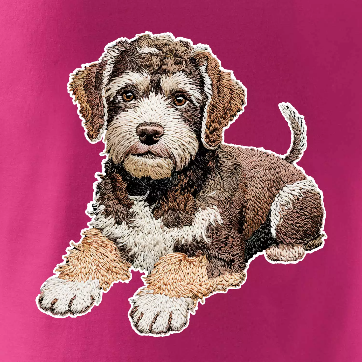 Lagotto romagnolo ležiaci vyšívaný na prsníku
