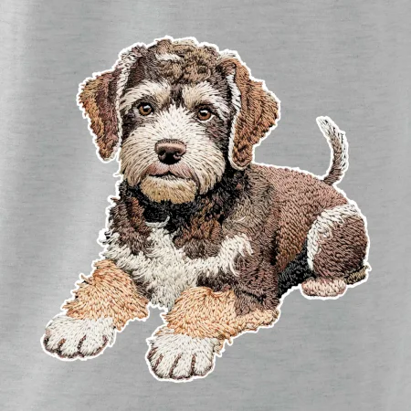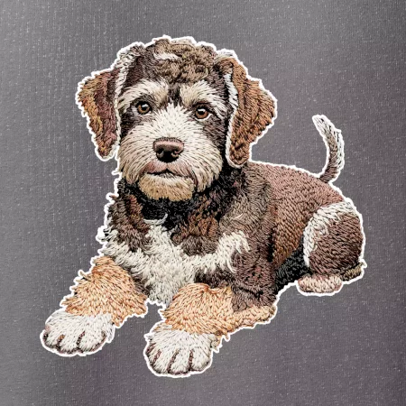 Lagotto romagnolo ležiaci vyšívaný na prsníku