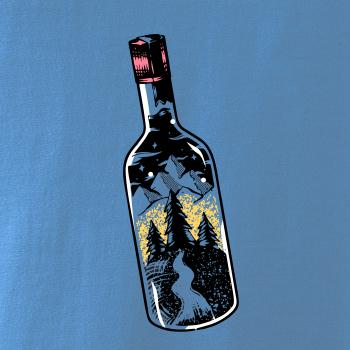 Fľaša, v ktorej je celý svet. tričko s fľašou, v ktorej je les a hory je vhodný darček pre cestovateľa. Každý kto má rád cestovanie a turistika je jeho obľúbená činnosť, by si mal toto tričko zaobstarať. tričko pre kempistov by si mal zaobstarať každý správny lesák.