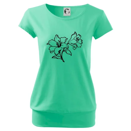 Trendové dámske tričko s veľmi krátkym rukávom, voľnejšieho strihu, v dolnom kraji všité do širokého lemu. Okrúhly priekrčník s úzkym lemom zo zhodného materiálu.