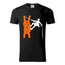 Poriadny horolezec musí mať poriadnu horolezeckú výbavu: karabínu, lano, úväz a samozrejme tričko s horolezeckým motívom!