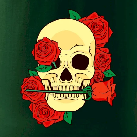Lebka držiace ružu