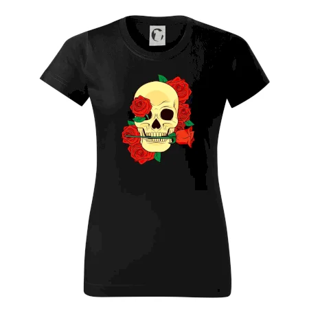 Lebka držiace ružu