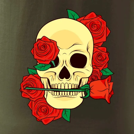 Lebka držiace ružu