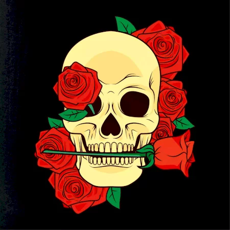 Lebka držiace ružu