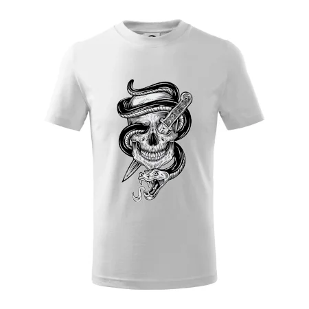 Detské tričko strednej gramáže s bočnými švami. Úzky priekrčník s prídavkom 5% elastanu. Vnútorná časť zadného priekrčníka začistená tkanou páskou. Spevnený ramenný šev.