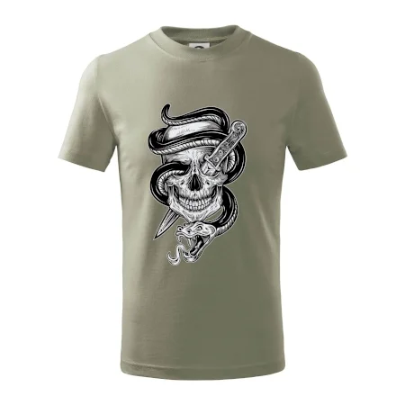 Detské tričko strednej gramáže s bočnými švami. Úzky priekrčník s prídavkom 5% elastanu. Vnútorná časť zadného priekrčníka začistená tkanou páskou. Spevnený ramenný šev.