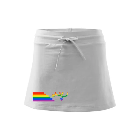 Dámska kraťasová sukňa MALFINI Two in One 604 je perfektnou kombináciou sukne a šortiek, ideálna na šport, voľný čas alebo ležérne nosenie. Vďaka prídavku elastanu si sukňa zachováva tvar a ponúka pohodlie pri pohybe. Krátky strih do tvaru „A“ a široký elastický pás so sťahovacou šnúrkou zabezpečujú voľnosť a prispôsobenie.