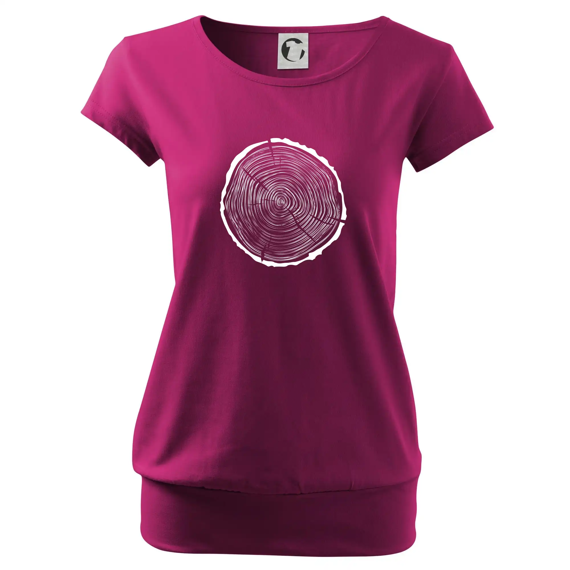 Trendové dámske tričko s veľmi krátkym rukávom, voľnejšieho strihu, v dolnom kraji všité do širokého lemu. Okrúhly priekrčník s úzkym lemom zo zhodného materiálu.