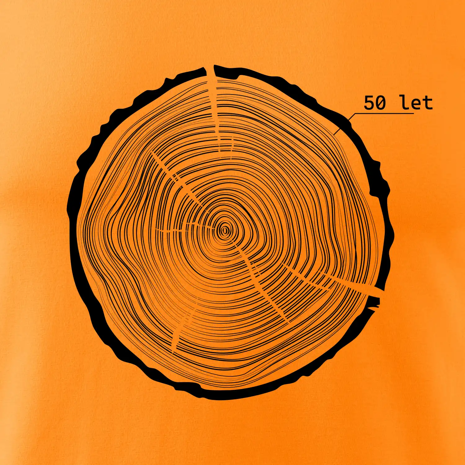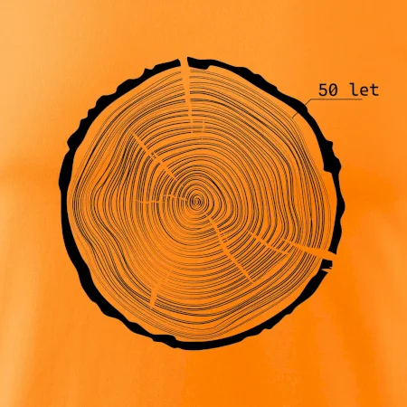 Grafika tvorí kruhy pripomínajúce letokruhy stromu, v ktorých sa opakuje číslo 50 ako symbol veku — vrstvy života znázornené jednoduchým, prírodným motívo