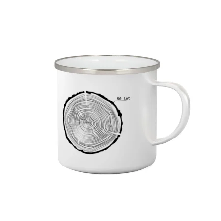 Grafika tvorí kruhy pripomínajúce letokruhy stromu, v ktorých sa opakuje číslo 50 ako symbol veku — vrstvy života znázornené jednoduchým, prírodným motívo