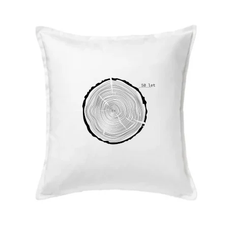 Grafika tvorí kruhy pripomínajúce letokruhy stromu, v ktorých sa opakuje číslo 50 ako symbol veku — vrstvy života znázornené jednoduchým, prírodným motívo