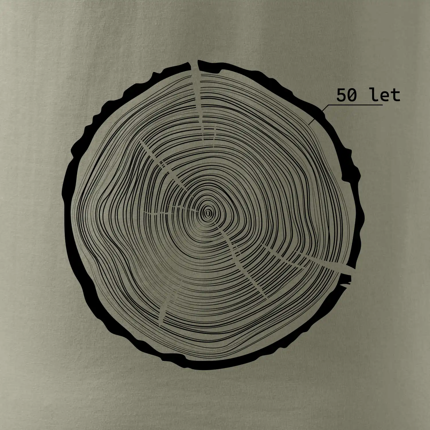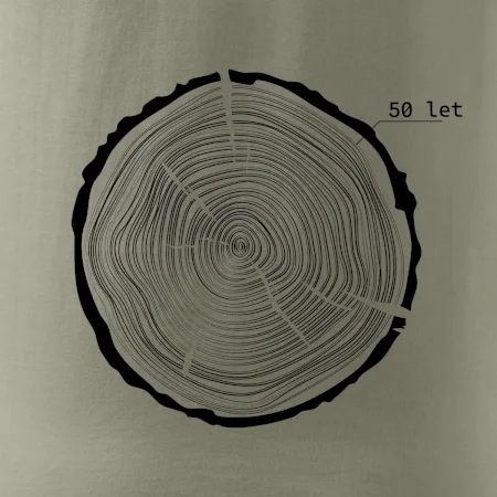 Grafika tvorí kruhy pripomínajúce letokruhy stromu, v ktorých sa opakuje číslo 50 ako symbol veku — vrstvy života znázornené jednoduchým, prírodným motívo