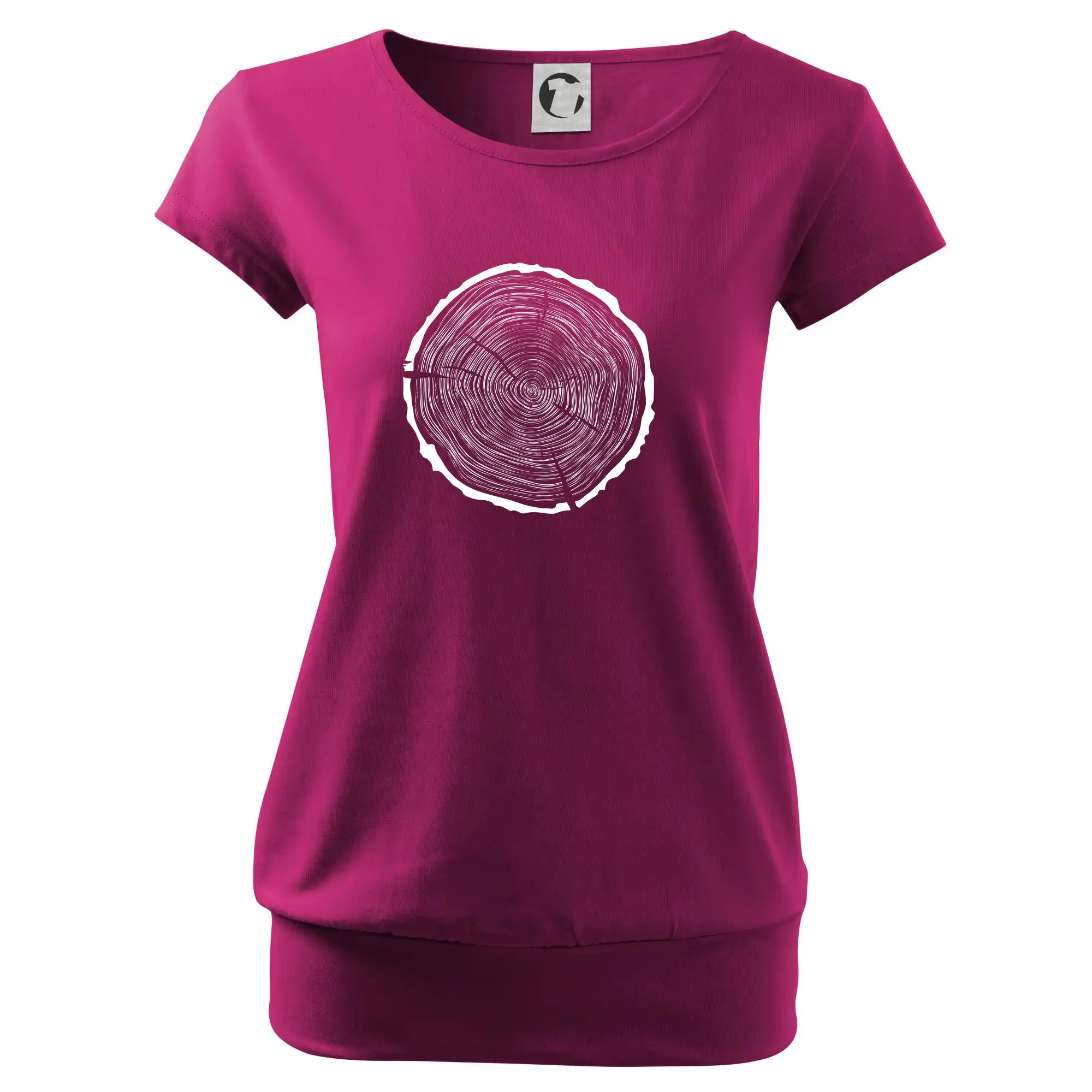 Trendové dámske tričko s veľmi krátkym rukávom, voľnejšieho strihu, v dolnom kraji všité do širokého lemu. Okrúhly priekrčník s úzkym lemom zo zhodného materiálu.